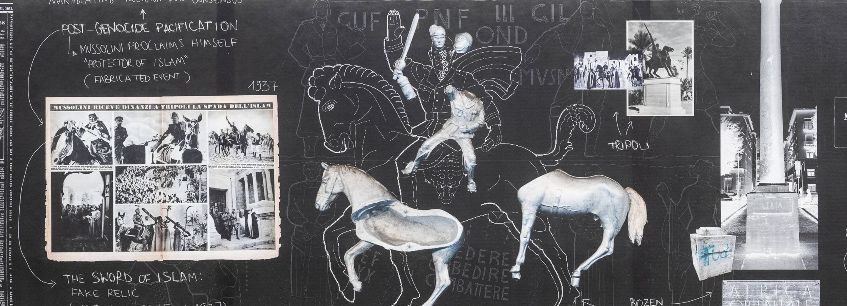 Ferrini takes an editorial approach, interweaving iconographic and written records of those who resisted a genocide being covered up. The selected archival excerpts in her exhibition offer a new angle on the resonances between individual histories. The 14-minute audio piece produced by Alessandra Ferrini for the exhibition provides the soundtrack for Reading Rivers’ extended reading of Unruly Connections. Join us on a discursive guided tour of the exhibition, and then of the city itself, through Ferrini’s artistic-activist lens, exploring places in Bolzano that recall Italy’s colonial history, from street names and squares, to buildings and public monuments. Reading Rivers is delighted to have the historian Hannes Obermair accompany this session and contextualise for us some traces of Bolzano’s imperial past.